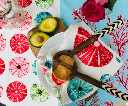 We're thrilled to showcase these vibrant, ocean-inspired tea towels, beautifully brought to life by the talented Sarah Epsom!