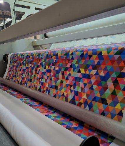 The inks in sublimation printing are extremely heat sensitive, and when heated turn into a gas that combines with the 100% polyester medium. As the colour becomes part of the fabric itself, the image won’t fade or crack even after many washes. As part of the process, we’ll first print your design onto a specific paper that’s placed on top of the polyester and heat transferred to create the finished fabric.